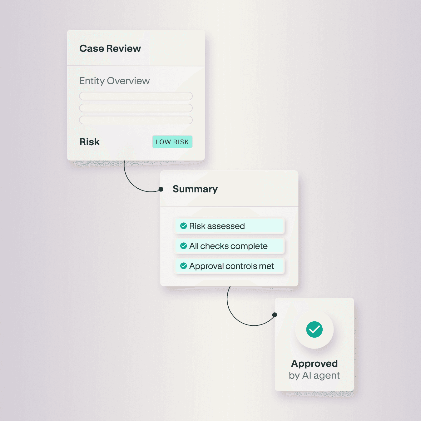 Set your risk logic once. Low-risk cases move automatically. Complex ones escalate with everything your team needs to make a defensible call.