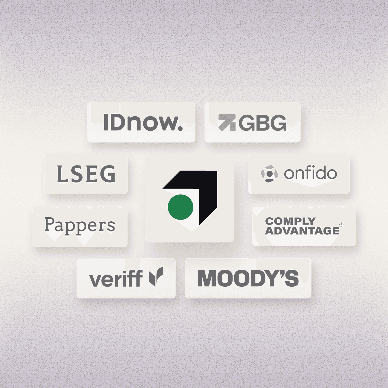 Access business registries, credit bureaus, identity providers, and AML screening through a single API.