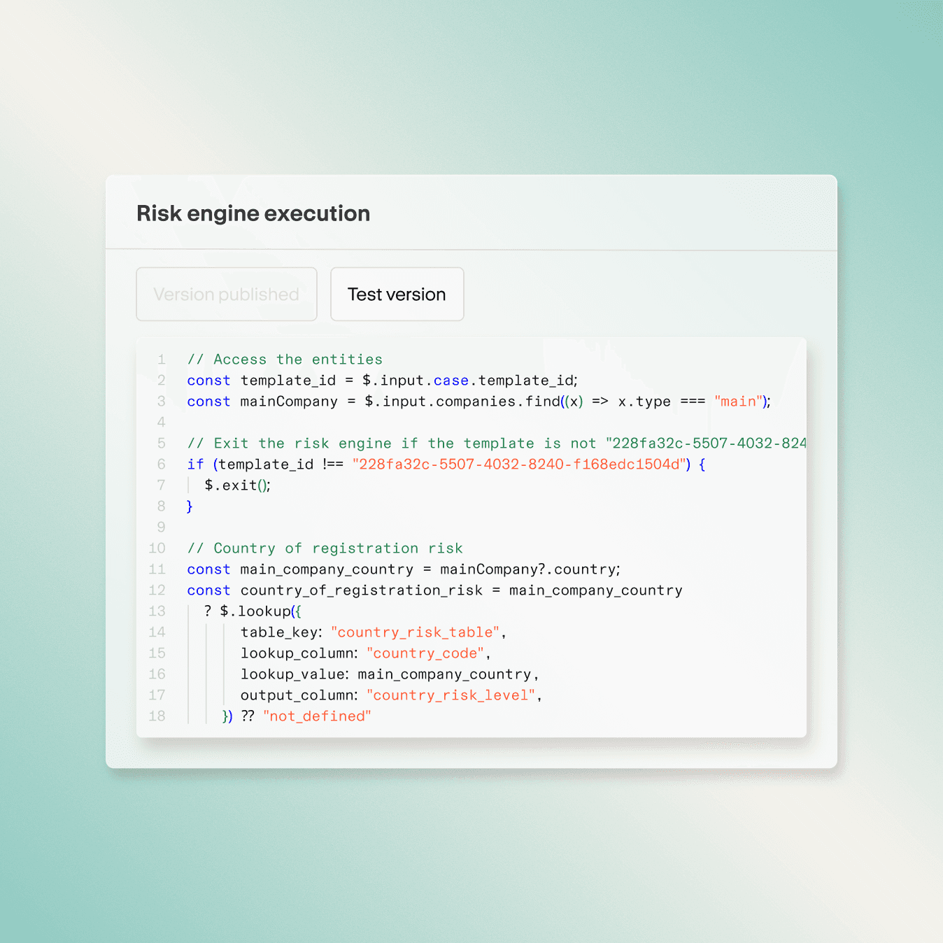 Define risk factors, assign weights, and set thresholds that match your risk appetite and regulatory requirements.